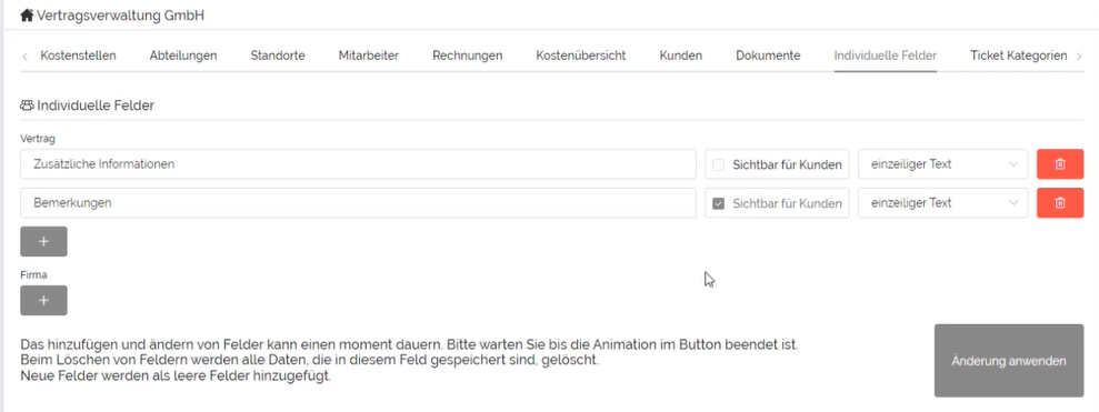 • Für individuelle Felder kann nun festgelegt werden, ob der Kunde dieses sehen kann oder nicht.