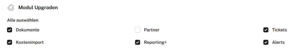 Ihr könnt das Modul Alerts aktivieren, indem ihr unter Upgrade Module in der Checkbox einen Haken vor dem Modul Alerts setzt.