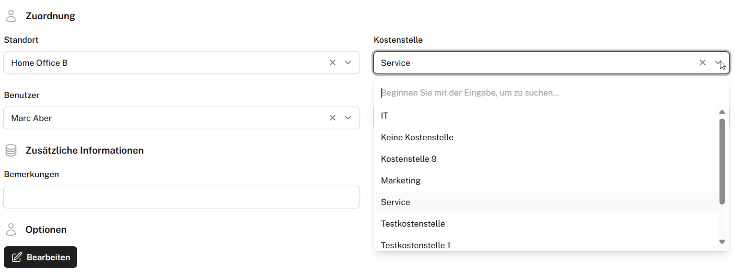 Wenn ich die Kostenstelle „Marketing“ im Februar auf Kostenstelle „Service“ ändere, wird der Vertrag ab Februar 2024 bei Kostenstelle „Service“ im Report zugeordnet.