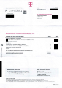 Folgende Dokumente erhält man von der Telekom: